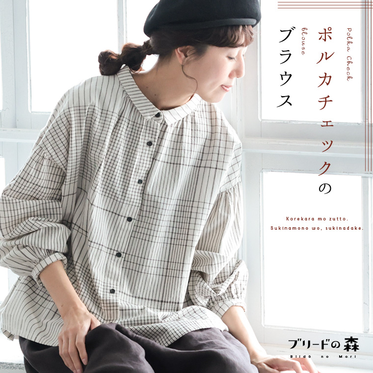ポルカチェックのブラウス