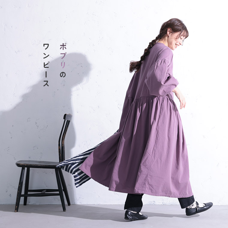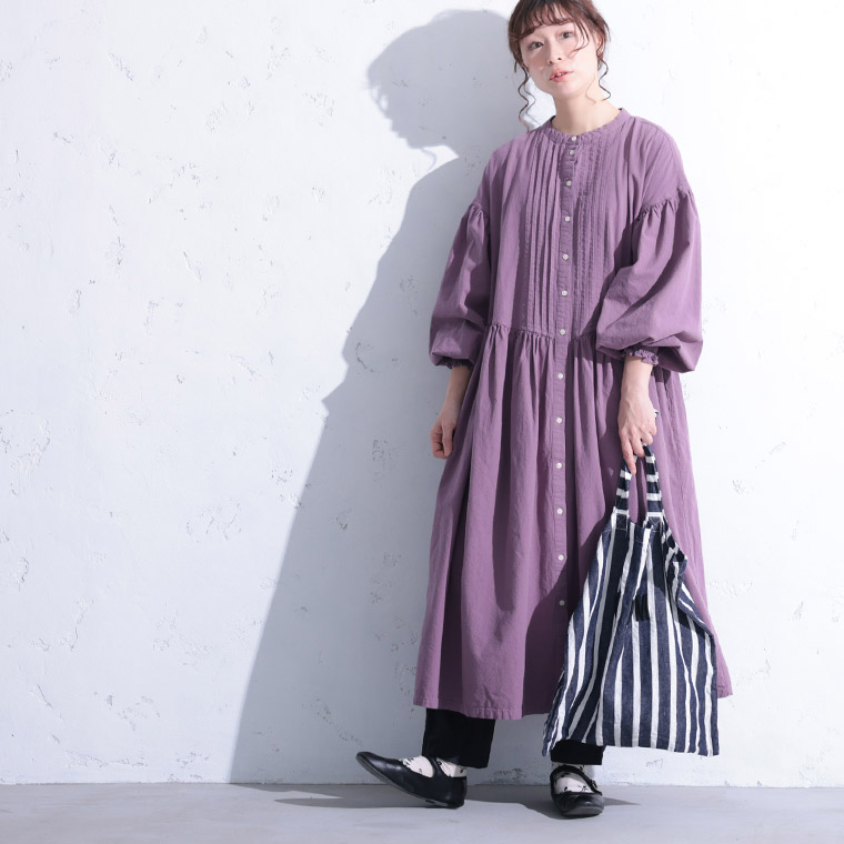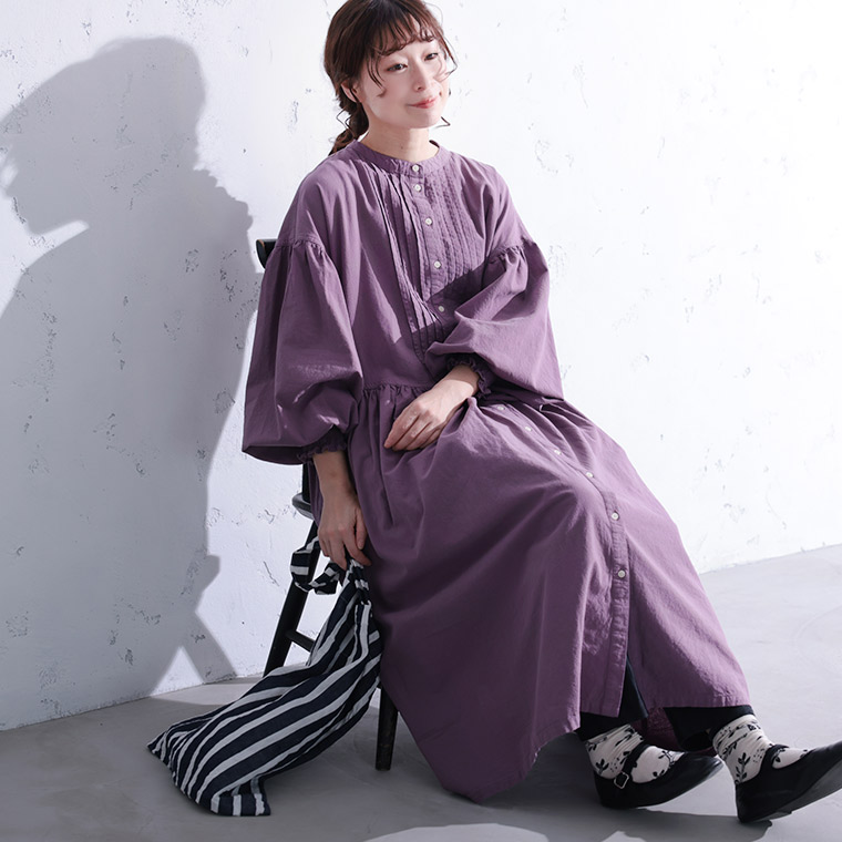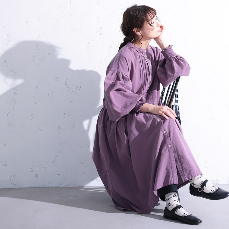 ポプリの花びらみたいに、くすんだラベンダーのワンピース。