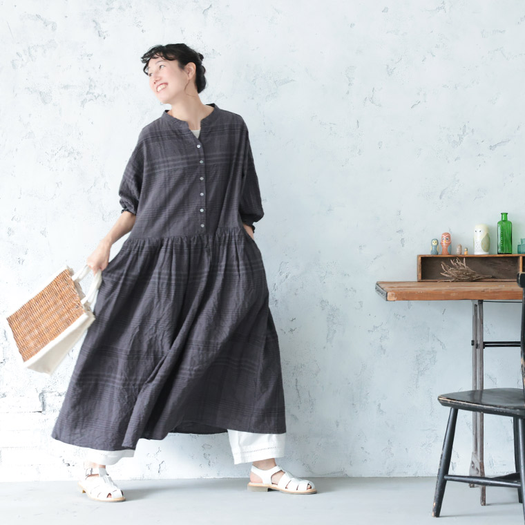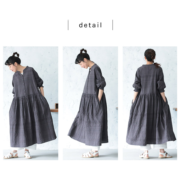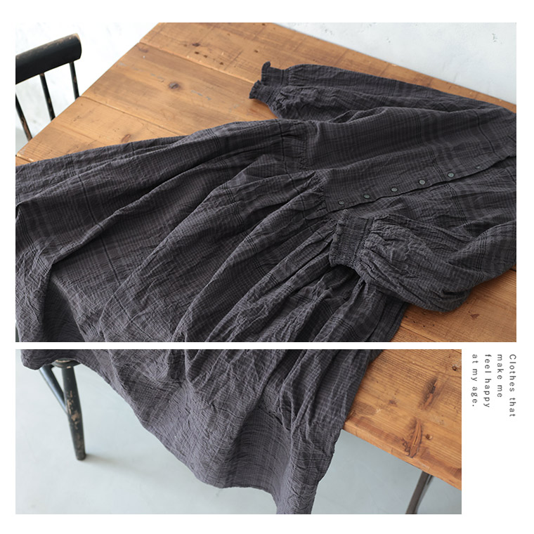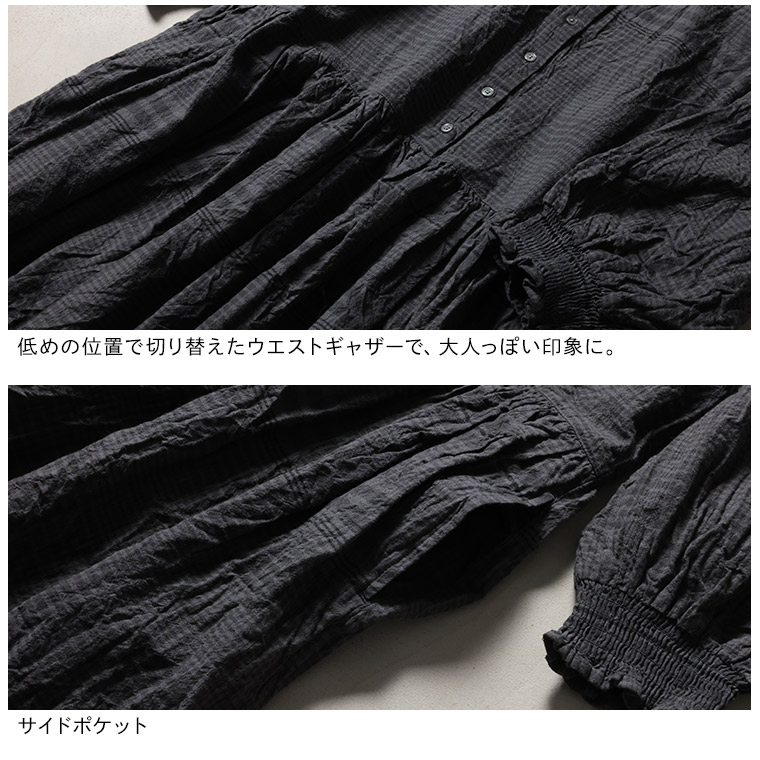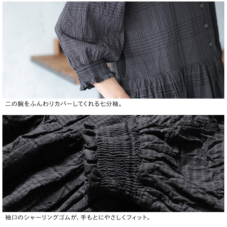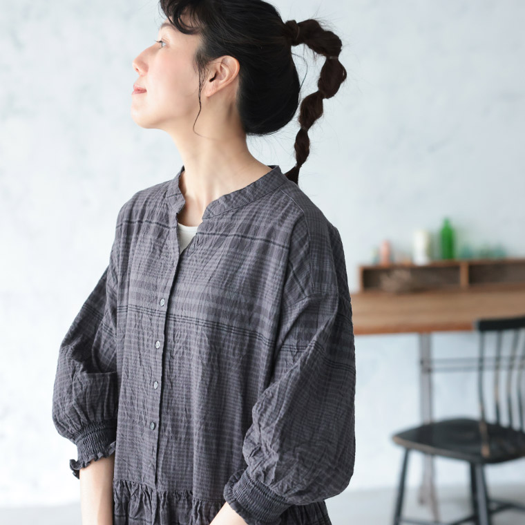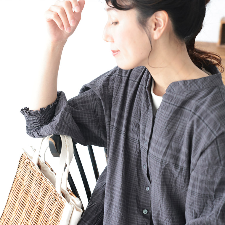 ギャザーや袖のフリルなど、繊細な動きと合わさって表情ゆたかな1枚に。
