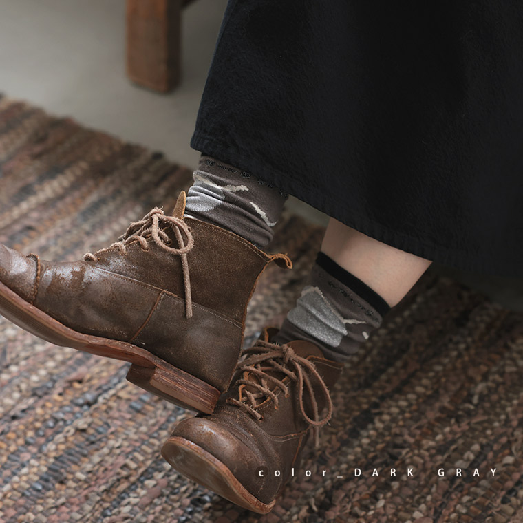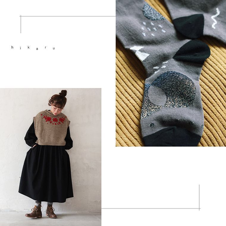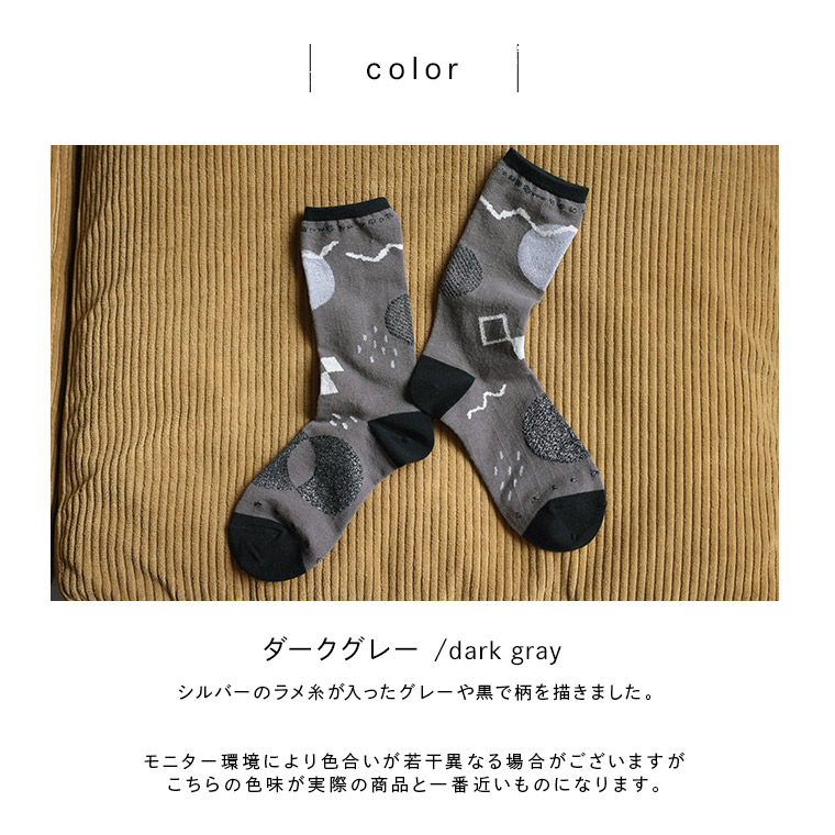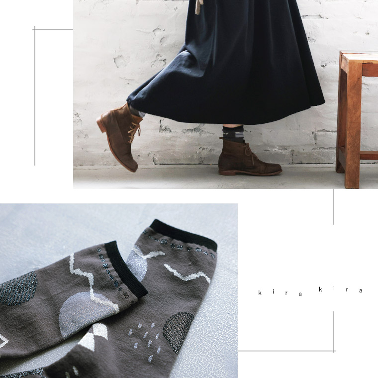 抽象的な柄が歩くたびにきらきら光る靴下です。
