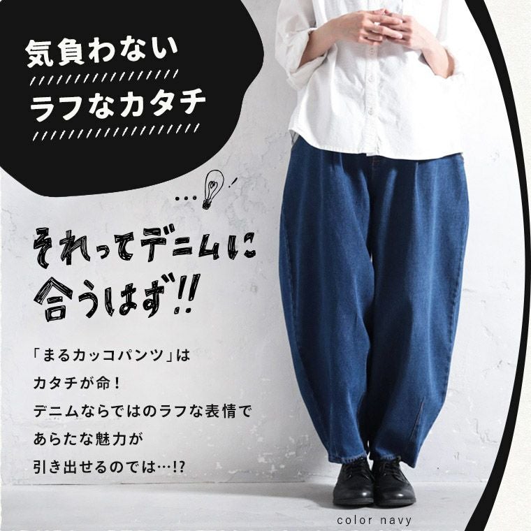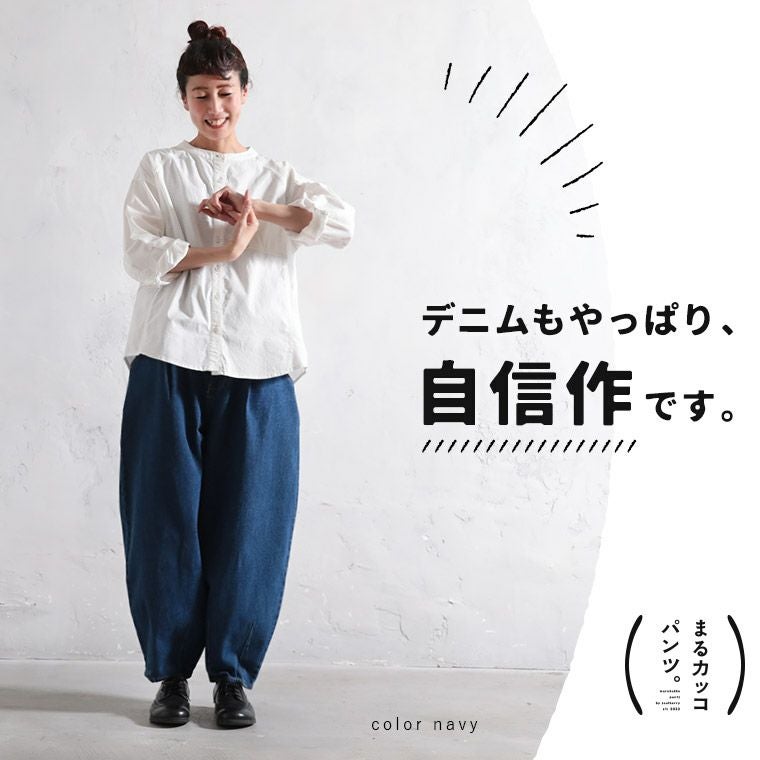 デニムでつくった、まるカッコ()パンツ。