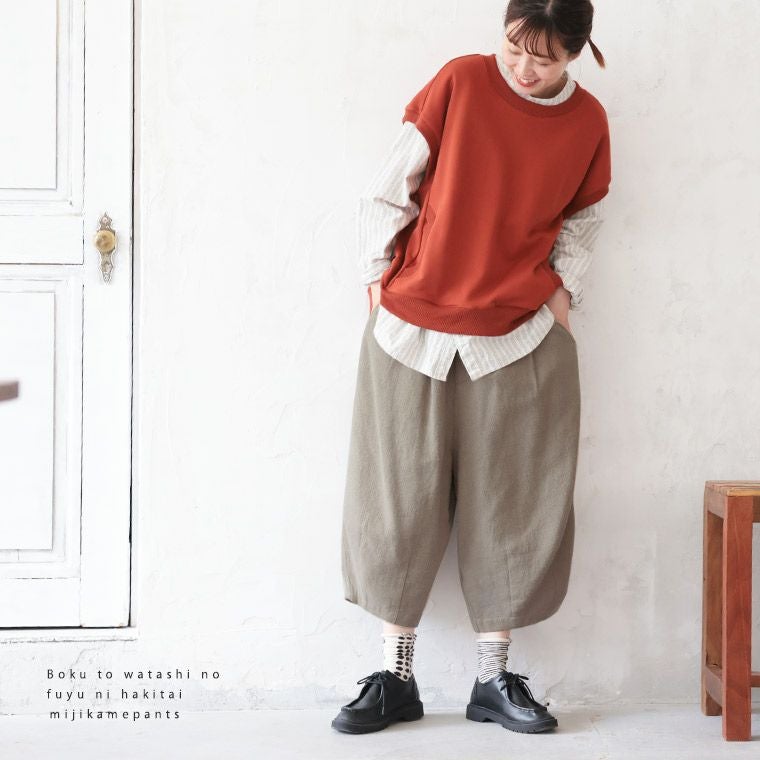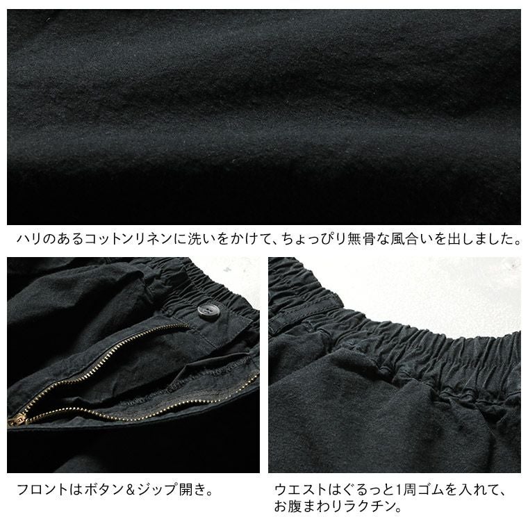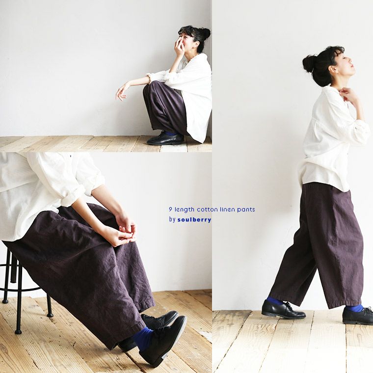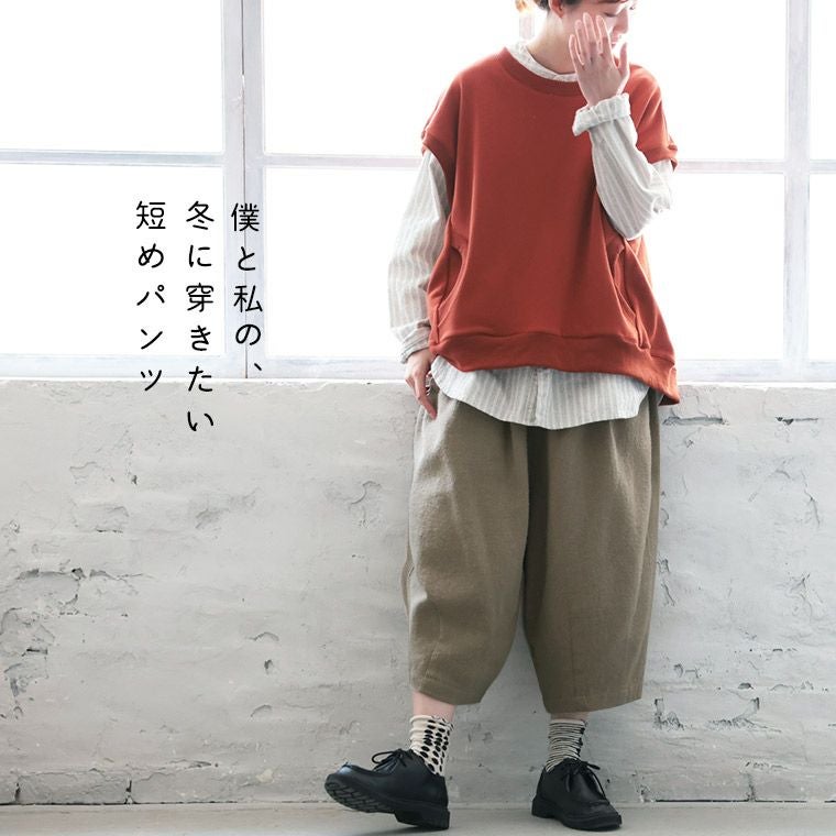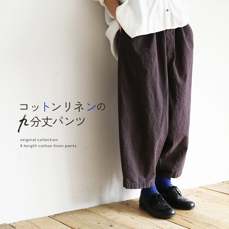 コットンリネンの九分丈パンツ