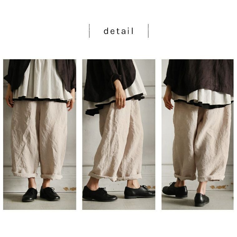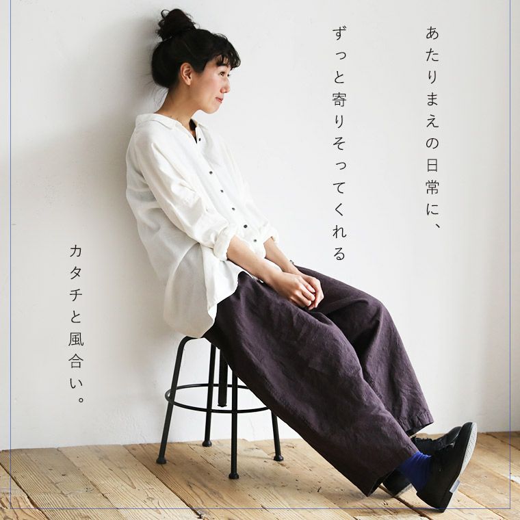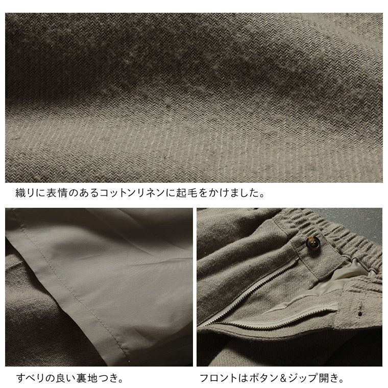 麻100%で仕立てたパンツ