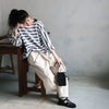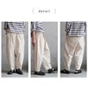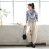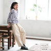 白い夏のズボンが欲しくて買いました。靴下を見せたいのと、背が低いので裾を3回折って穿いています。ダボダボして可愛いです。股上がとても深く、股の部分がかなり下に来ますが、クレープのステテコをはくと気になりません。ソウルベリーさんのズボンはどれも股がかなり下にくるのですが、そこが可愛いかなと思います。薄い生地も気に入っています。前が斜めに重なっているデザインは鏡で見ると変な気もしますが、きっとこれがおしゃれなんだと信じて今年の夏はいっぱい穿きます。