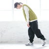 裾しぼりのトラックパンツ風ながらも、