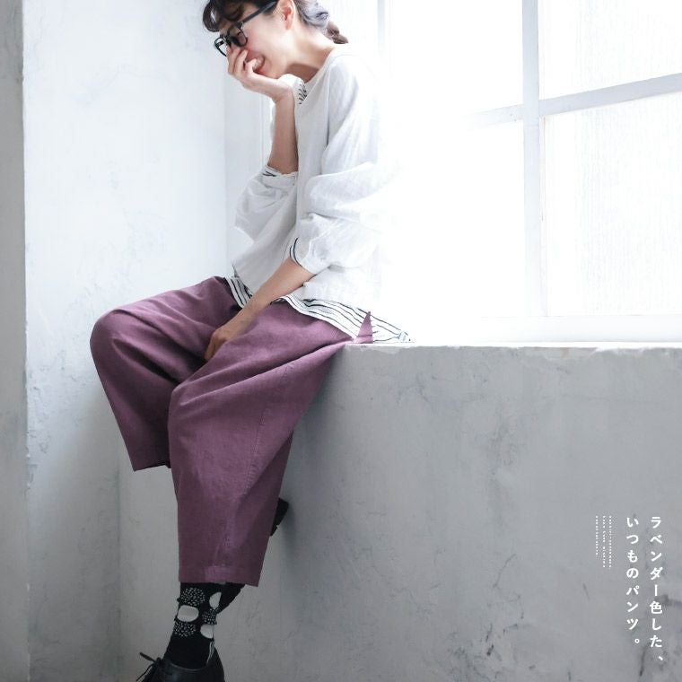 コットンリネンの九分丈パンツ