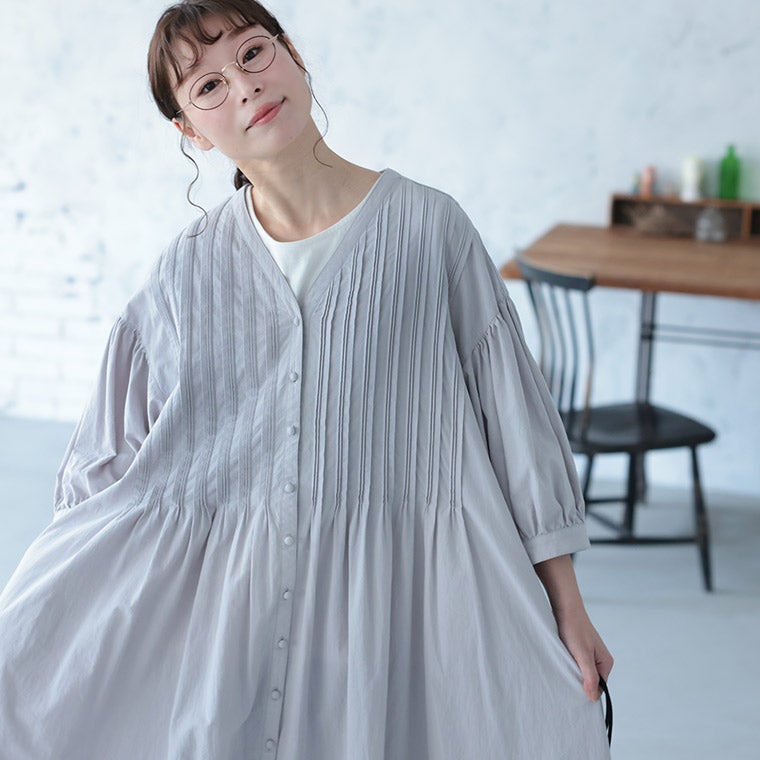 淡墨ピンタックのワンピース