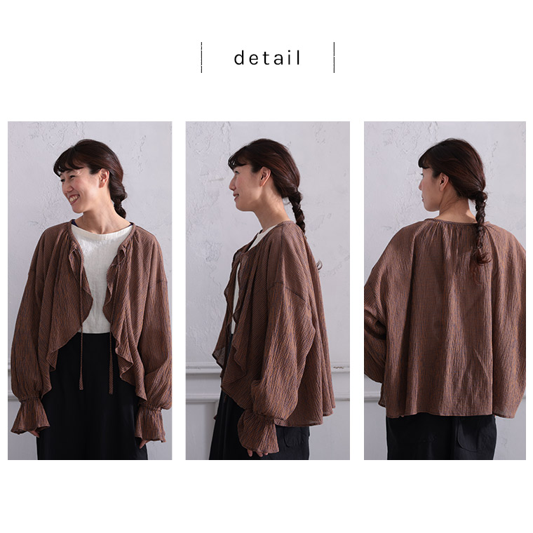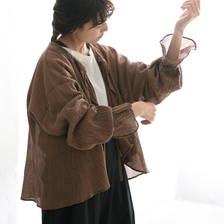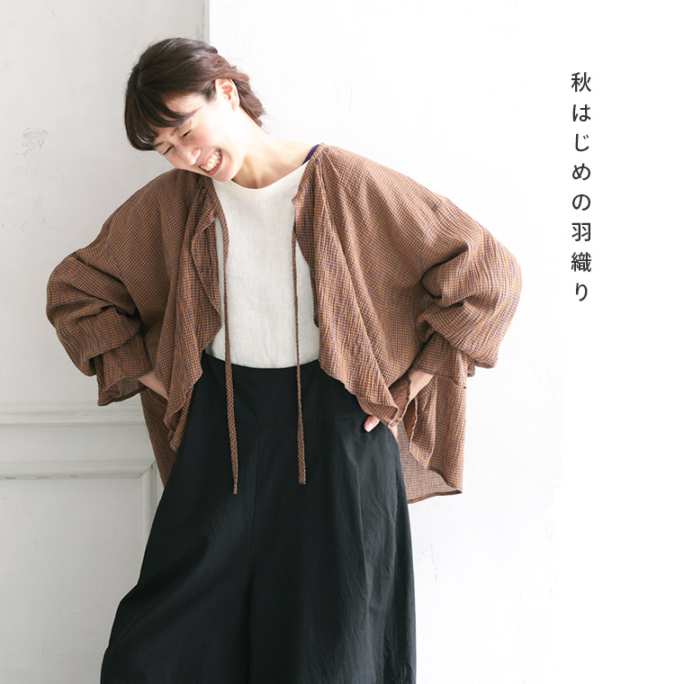 シワになりにくく、ティシャツの上からサッと羽織れます。