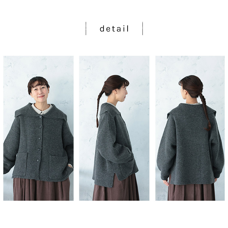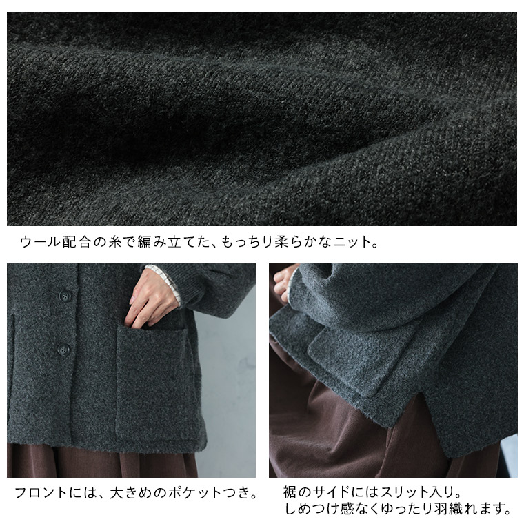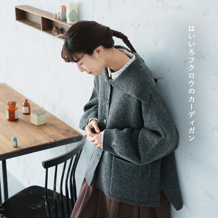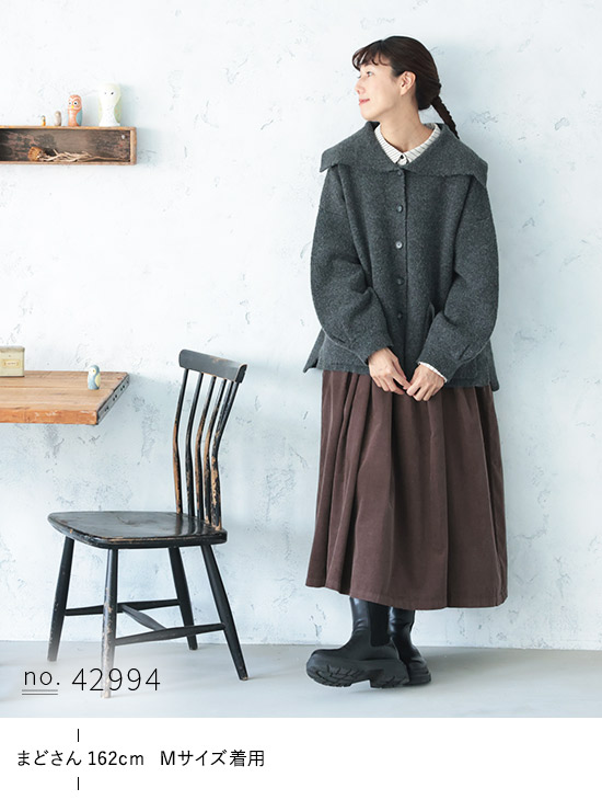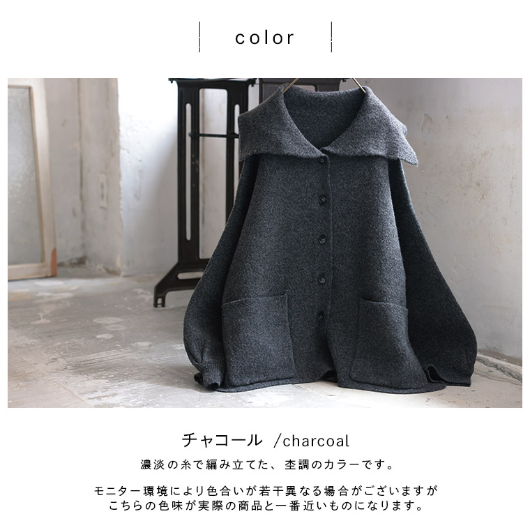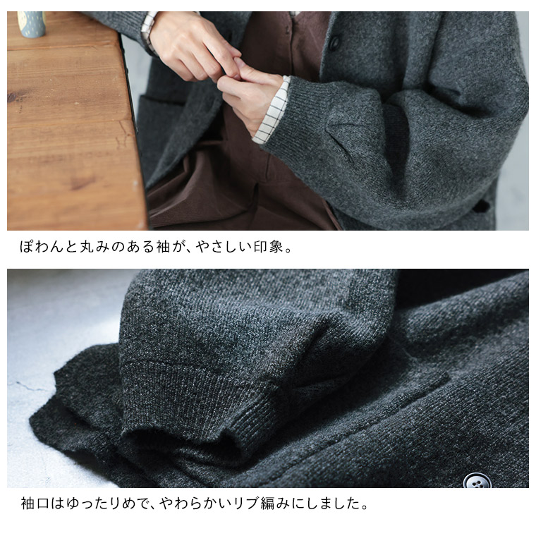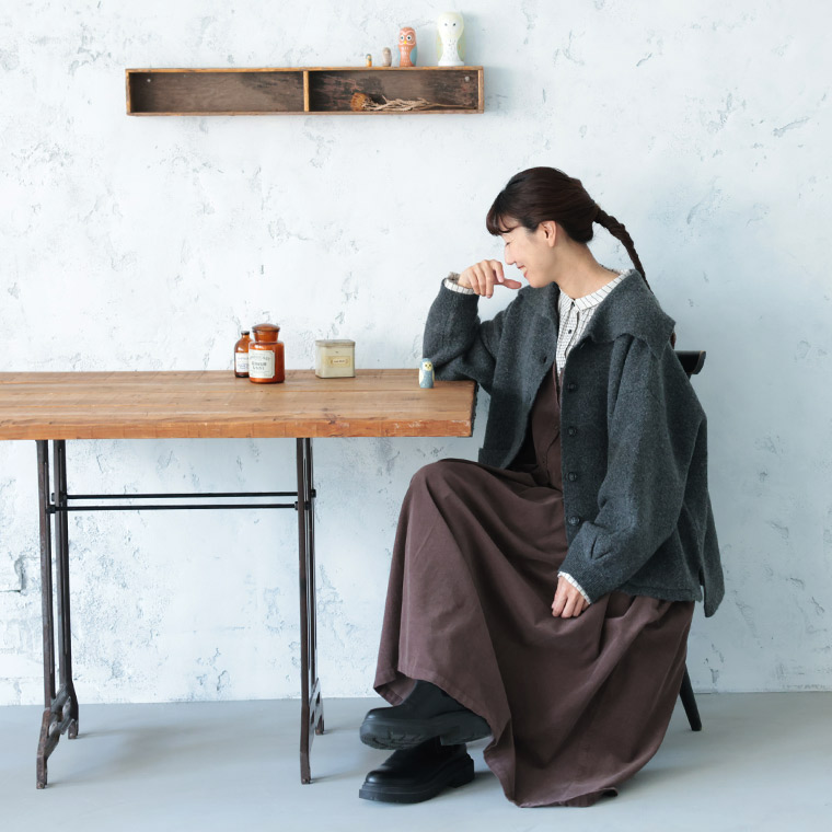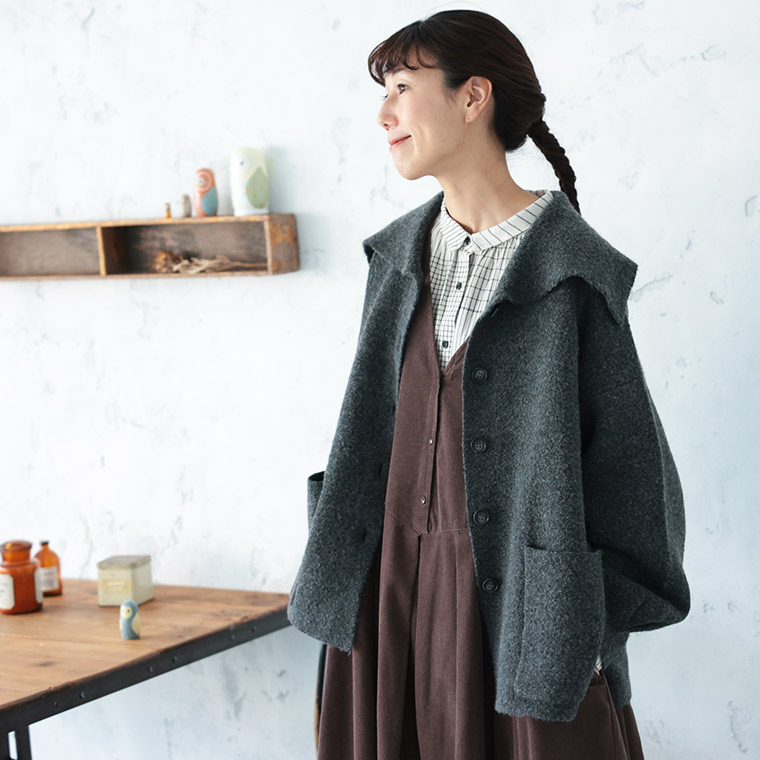ちょっとそこまでのアウターに、と思って買いましたが、思ったより薄手でした。 柔らかくて軽いので、コートの下に着る羽織りものとして使いたいと思います。 袖口がポワンとしているので、下に着るブラウスやワンピースの袖を潰さずに着られそうです。 一緒に買った『冬のわがままパンツ』チャコールが 意図せずセットアップのようになりました。 中に明るい色のシャツを仕込んで、そのままお出かけ出来そうです。 こういう嬉しいサプライズもソウルベリーさんの魅力ですね。
