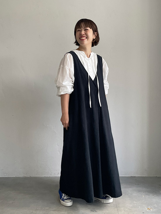生地も柔らかく、透け感のある薄い生地で夏でもOKですね!袖のフリルと首元のリボンが可愛いです! サロペットやベストに合わせるブラウスとして購入しました。 あさみんがドットの刺繍ベストや店長のデニムに合わせたコーデを紹介してたの見てそれぞれの服は持ってるので早速組み合わせて着てお出かけ楽しみたいです! サイズ感的に余裕もありつついつもの3LでOKでした! ブラウスの丈感も短めな方だから、パンツやスカートもかわいく仕上げてくれるし、サロペットではちゃんと見える部分がリボンとフリルで可愛いく仕上げてくれるのでこれからたくさん着れるのが楽しみです!