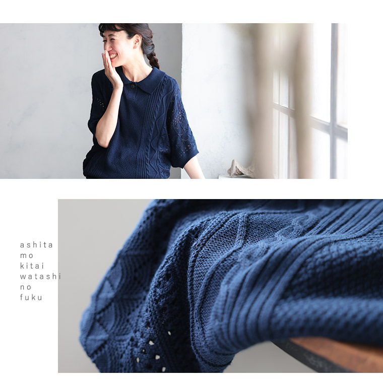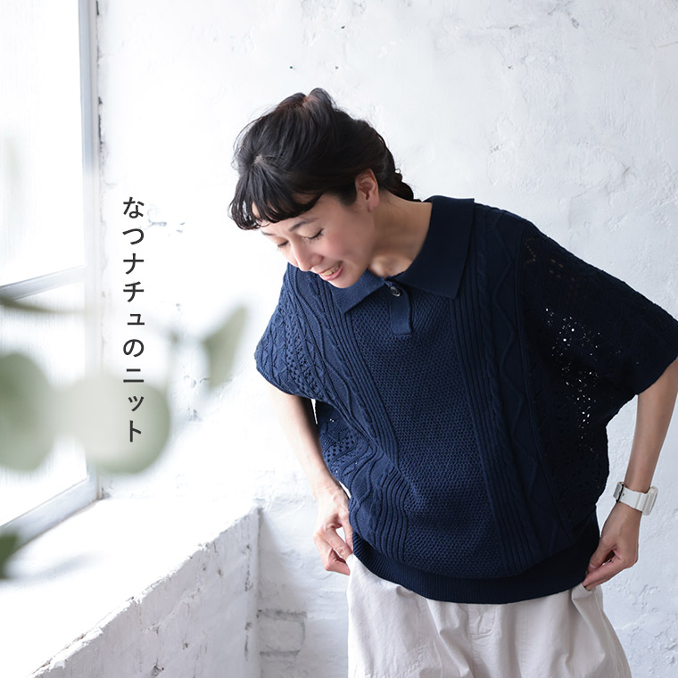 ちょっぴりオトナで上品な、襟つきのサマーニット。