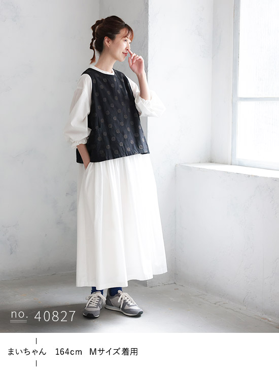 程よくハリがあり、着丈が長過ぎず低身長の私でもバランスよく着ることができます。ドット刺繍があるおかげで、インに着るものが柄物でも無地でもまとまります。 長い期間着ることができて、買ってよかったと思います。