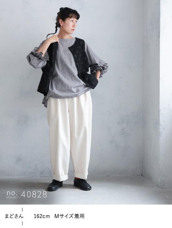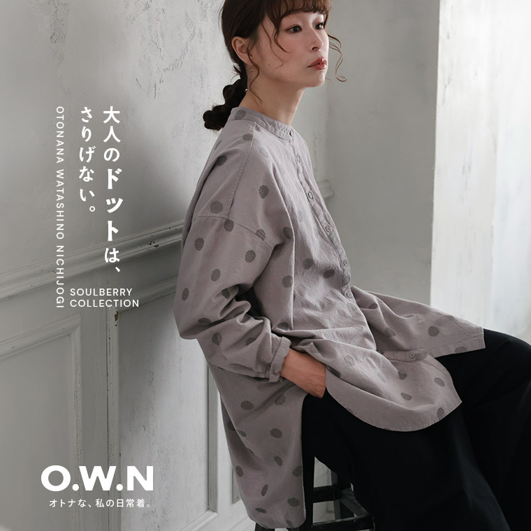 大人にも馴染むドットの、まるい襟のプルオーバー