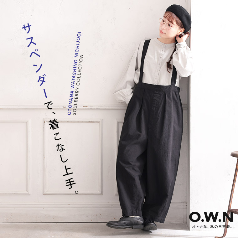 すっきり可愛いサスペンダーパンツ