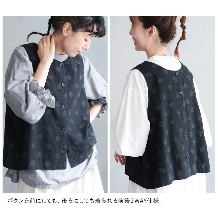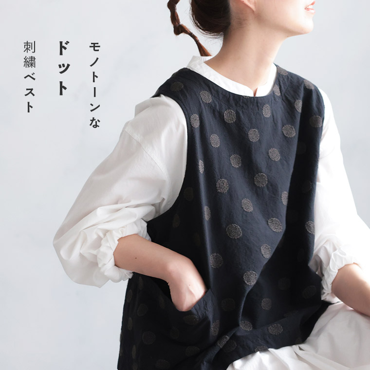 モノトーンなドット刺繍ベスト