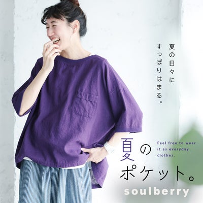 色が濃い紫で素敵。去年同じ形の赤シャツ今も伸びず色褪せず綺麗なまま着れている。こちらも大活躍間違いなしです。