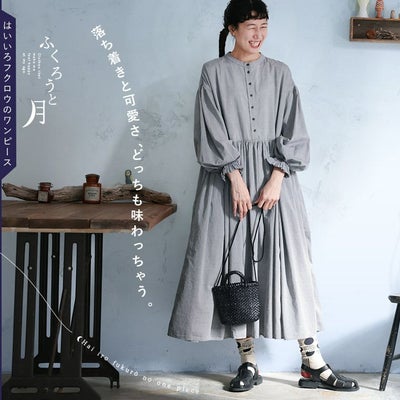 私にはウエストの切り替え位置が少し高めかなぁ? 腰回りのギャザーが膨らむかなぁ?と少し心配だったので 着丈確保と切り替え位置を少しでも下にしたくて1サイズアップで購入しました。 おかげで切り替え位置も高すぎずのちょうどいい位置で、ギャザーも膨らまずで嬉しい。 袖のフリルの高さが低めでそこまで目立つわけでもなかったので 思っているほど甘々ともしておらず、実際はわりとベーシックに近い感じのワンピースでした。 シャンブレー生地と聞くと少し厚めだったり、ザラリとした肌あたりがあるのかな?と 想像したのですが生地感はとても薄くてツルっとしていて滑らか。すごく涼しいです。 落ち感もあって安っぽくないですし ギャザーの陰影やドレープがとても綺麗で縦ライン効果もあり のっぺりとせず素敵です。 グレーの色味も薄すぎず濃すぎずで ロングシーズン さらには末長く愛用できそう。 着用していないから分からないけれど汗染みが目立たないといいな。 袖をたくし上げている画像ばかりでわかりにくいですが、普通に手首まであるロングスリーブでした。 袖口のゴムはゆるめです。サイズチョイスは着丈重視のダウンがおすすめです。