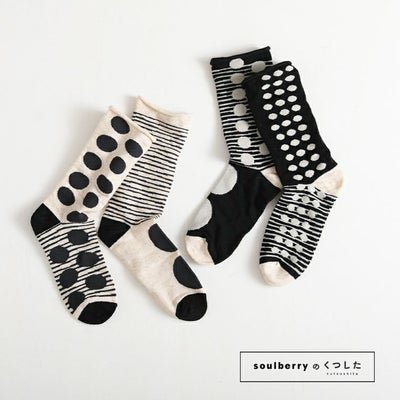 以前から欲しくて再販を待っていました。2色購入するか、悩んでいたのですが 結果、2色とも購入しました。キナリと黒、それぞれ、バラバラに組み合わせても履けそうです。モード系としても、ナチュラルにも履けそうです。今はまだ少し暑いので 秋口になったらおろそうと思っています。またクレイジー系柄の靴下が出たら購入したいです。小物は少しポップな色あいのものも、あればうれしいです。