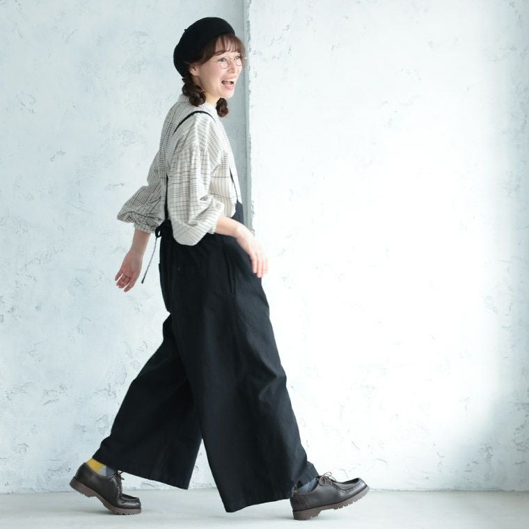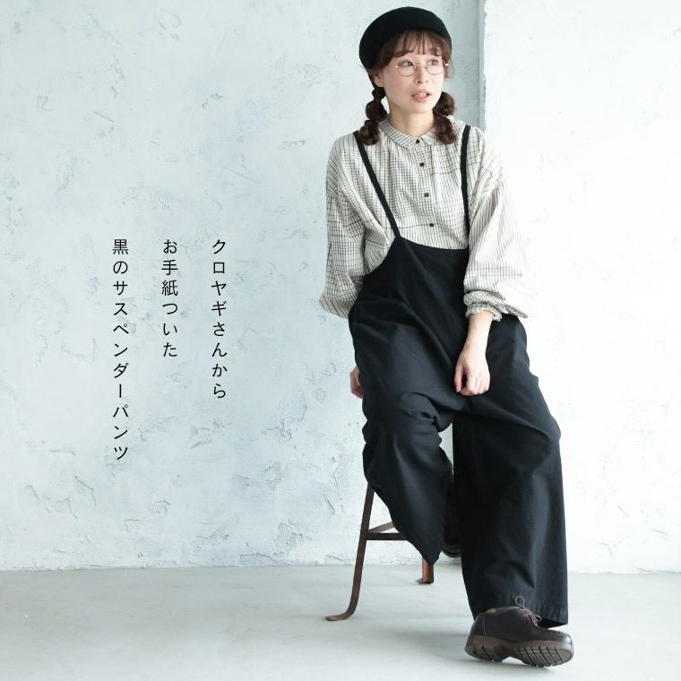 黒のサスペンダーパンツ