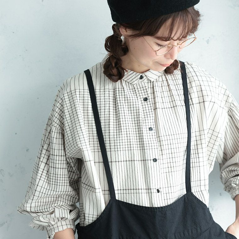 群青色のピンタックブラウス