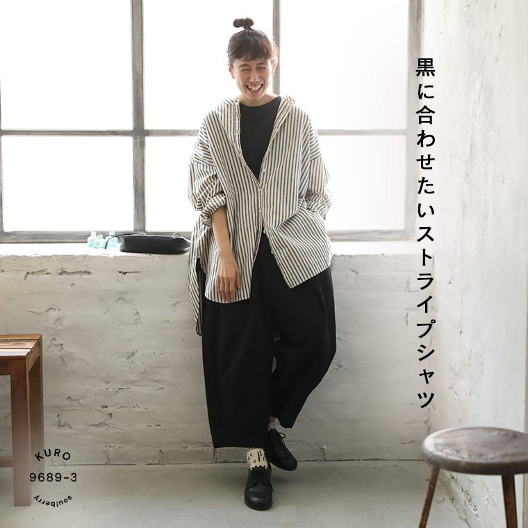 黒に合わせたいストライプシャツ